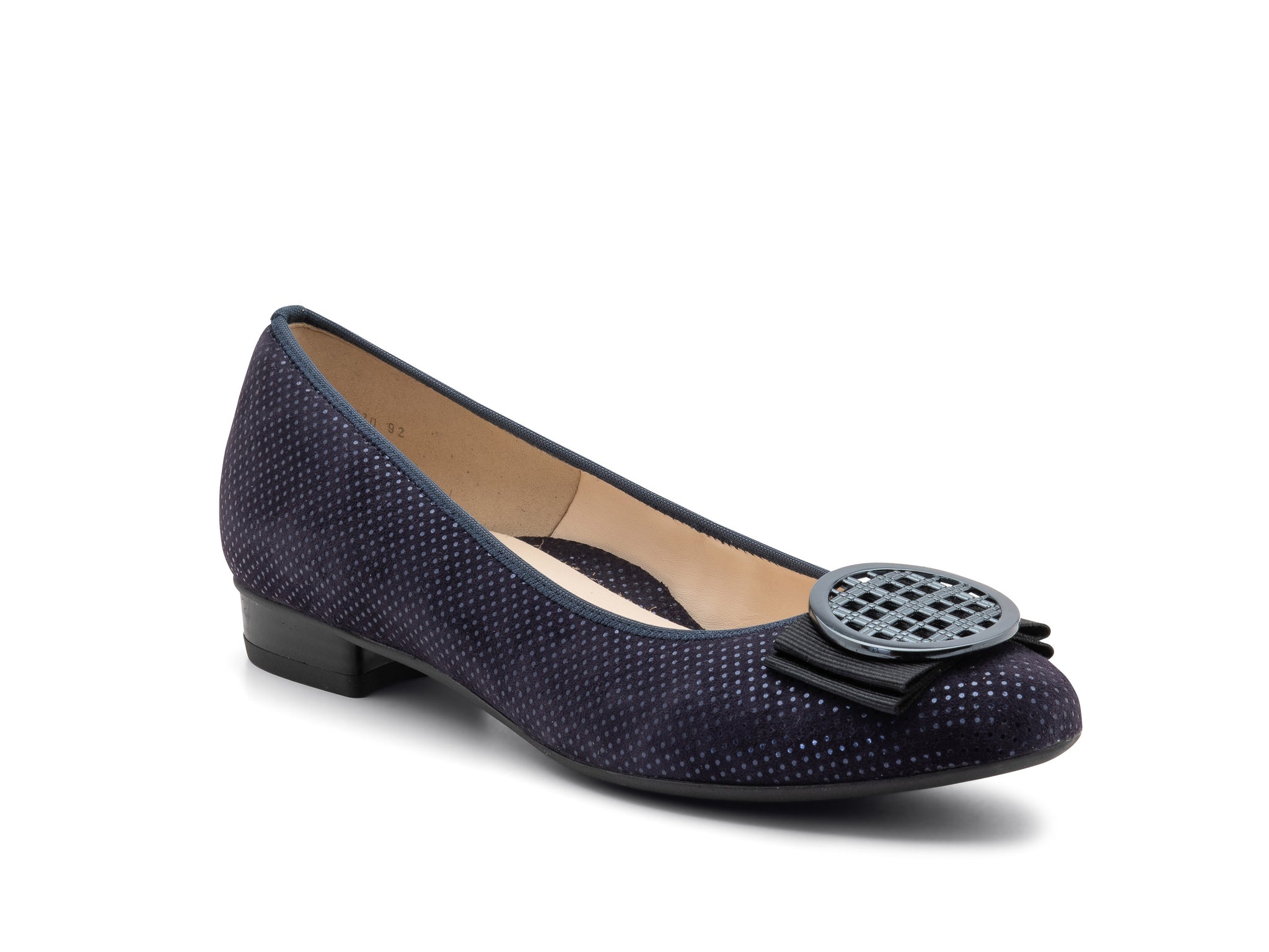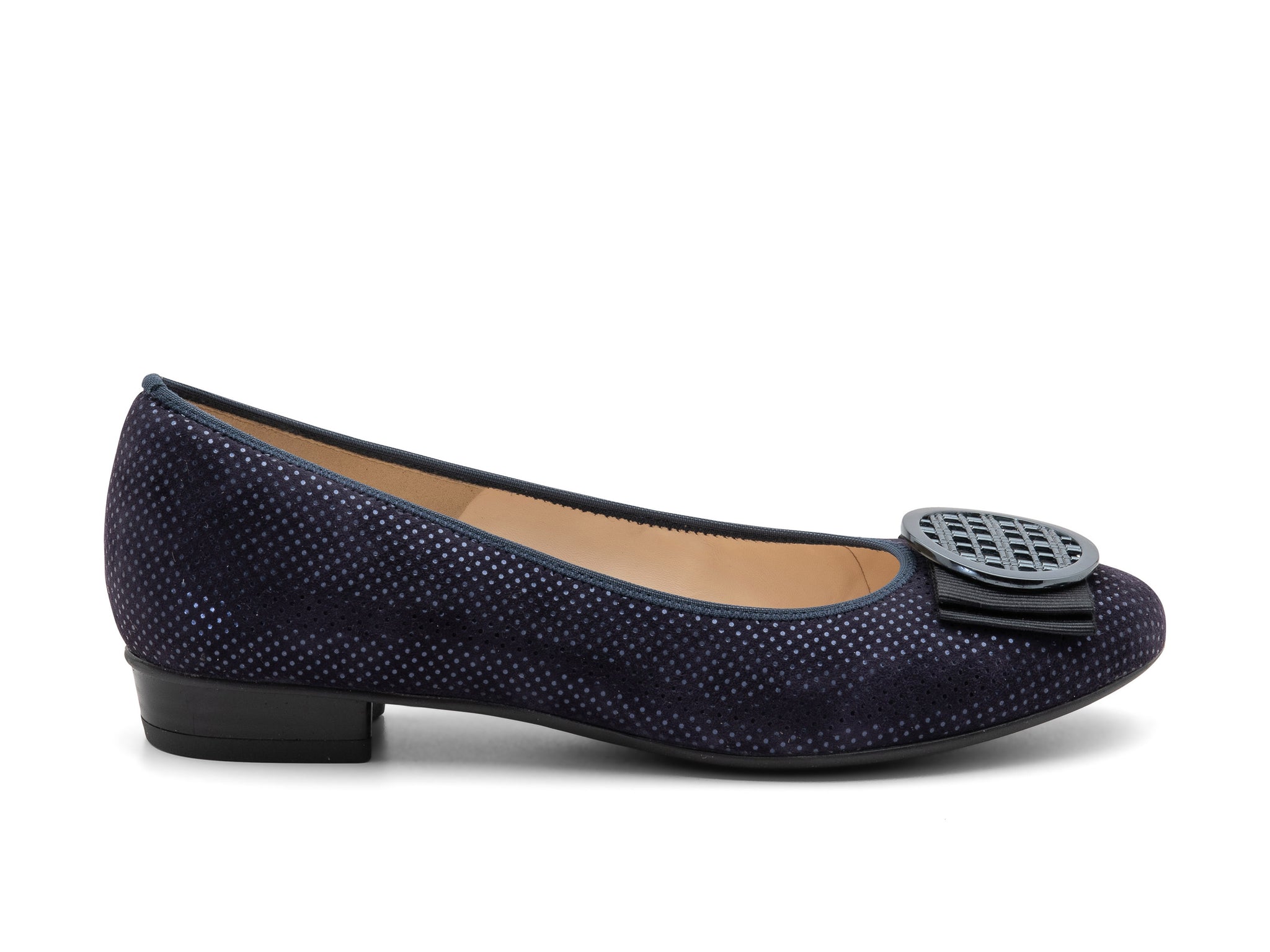 The Bambi by ara is a classic smart ballet flat that is ideal for everyday to evening. An elasticized topline creates a custom fit with added comfort. This chic flat features a metallic ornament, fabric bow trim, a rounded toe, and ara's HighSoft technology.