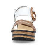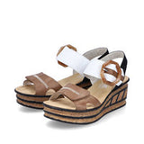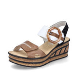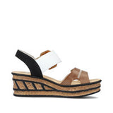 Attention, trend alert! These Rieker wedge sandals combine cool design with the best comfort and high functionality. Thanks to the stitched construction, the shoe is particularly stable and offers a flexible sole that adapts harmoniously to the foot. The model is put on in no time thanks to a double hook and loop fastener. The trendy buckle is a real eye-catcher. With the light and shock-absorbing sole with wedge heel, your feet will be pampered at every step. You can't ask for more!