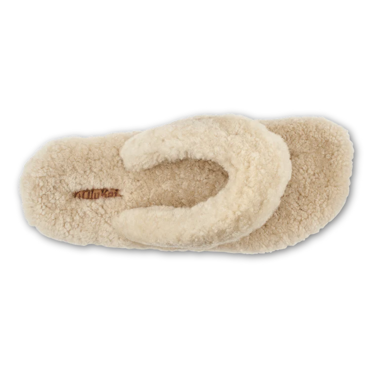 Part slipper. Part sandal. Pure softness. Our Kīpe‘a Heu is wrapped in fuzzy shearling. For the wāhine (women) who want to wear their OluKai slippers year-round, we designed the Kīpe'a Heu. Our commitment to comfort inspires this fluffy, genuine, shearling-wrapped sandal. They're so soft, you won't want to take them off. And thanks to a durable rubber outsole, you won't have to.