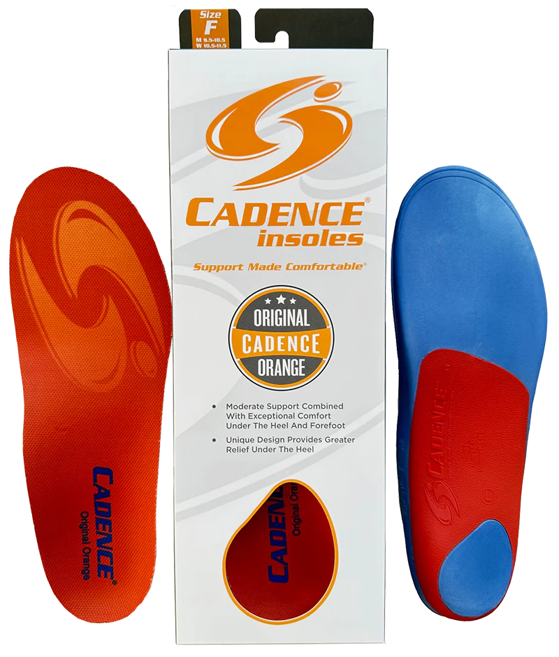 The Cadence Original Orange provides contoured semi-flexible support with exceptional shock absorbing comfort under the heel and forefoot. The support shell is more flexible compared to the EX and EX+MP and is intended for those with low to high arches and works best in moderate to high volume footwear.