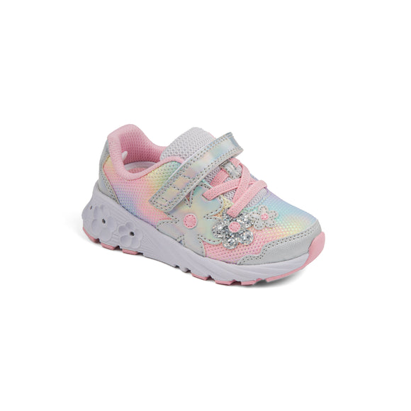 When is too much fun too much? We don’t know, but these shoes are looking into it. The Light-Up Glimmer Sneaker by Stride Rite goes full-sprint toward fabulous with its shimmery daisy-decked upper and brilliant light-up outsole that illuminates each step.