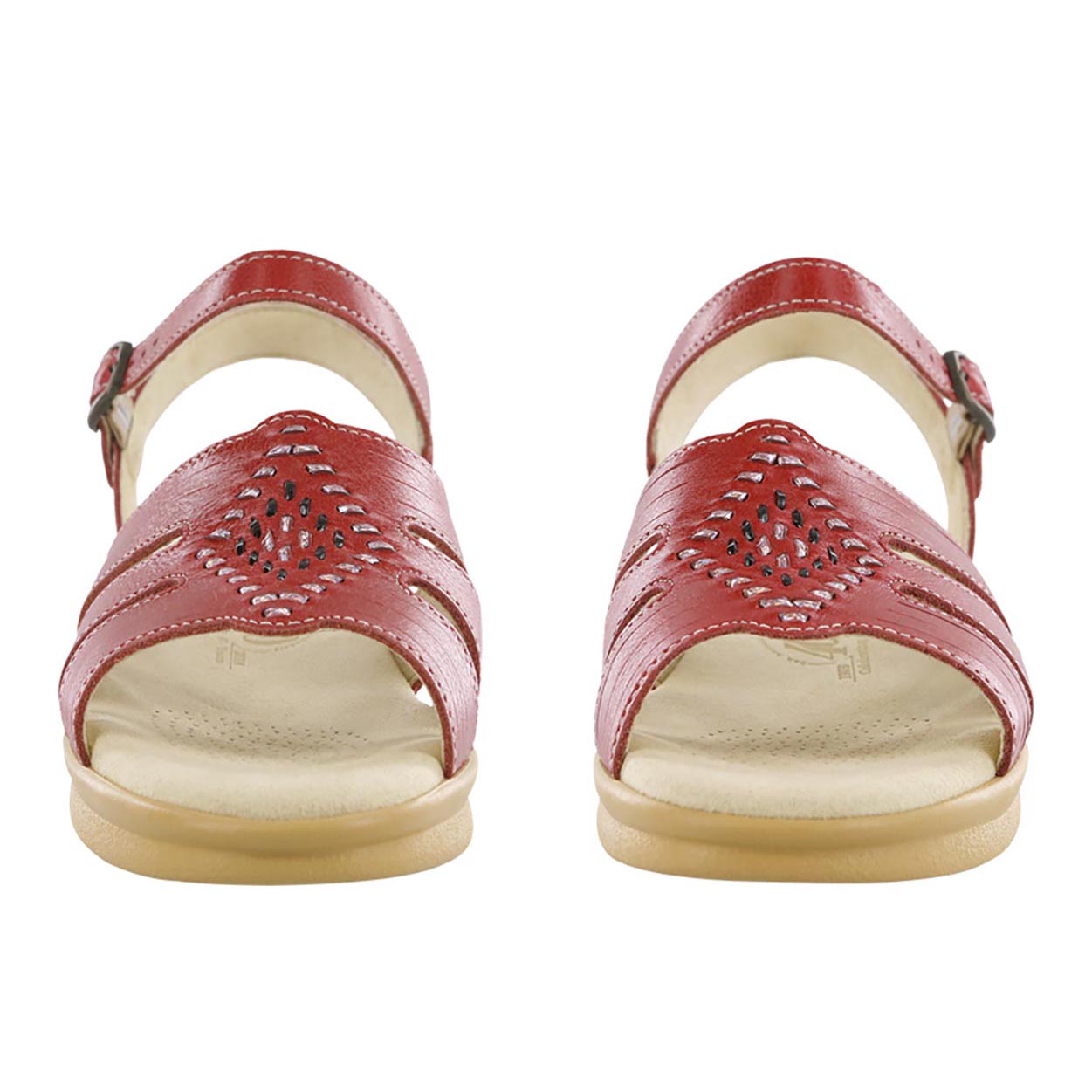 This comfortable sandal for women provides a unique, casual look and enhanced comfort in a single package. The footbed offers extra cushion while the adjustable buckles give you a custom fit. A backstrap gives you added stability, while the soft leather wraps your foot in comfort. The shock-absorbing sole is flexible, yet stable and provides all the support you need for a long day on your feet.