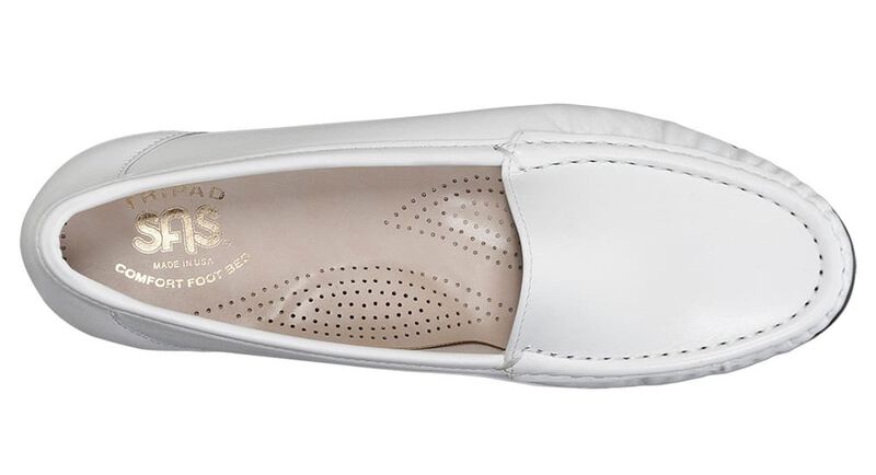 For those who like to keep it simple, here's a moccasin loafer with timeless style. Soft leather with padded lining wraps completely around the foot for a plush feel. A removable cushioned footbed and a lightweight shock-absorbing sole supports you with every step. Simplify features many beautiful smooth and textured leathers.